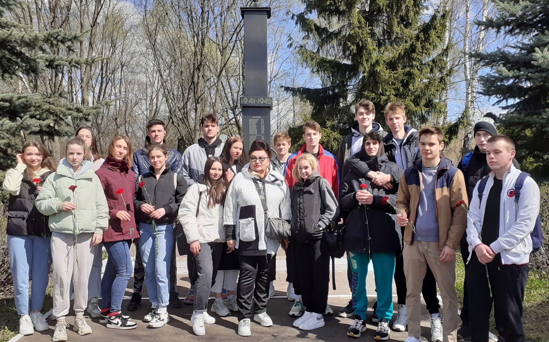 Возле монумента студенты прочитали стихи о войне и почтили память павших минутой молчания.